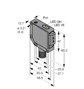 存储温度 : -40 ... 70 °C (-40 ... 158 °F) 外壳宽度 : 15 mm 外壳高度 : 61,7 mm 外壳深度 : 41,7 mm 防护等级 : IP67 / IP69 / IP69K 连接 : 4 针,M12 x 1 连接器,可旋转 90° 材料 : 质量 : 大约 47 g